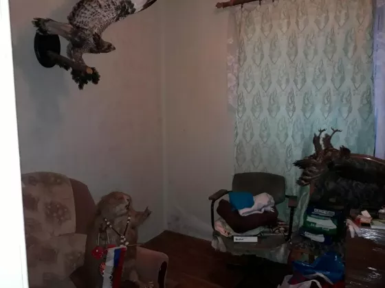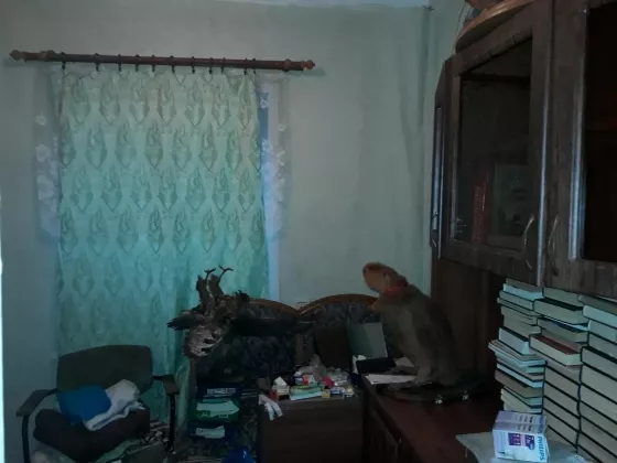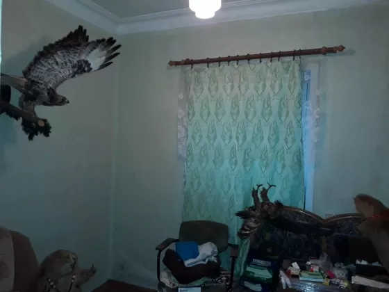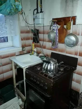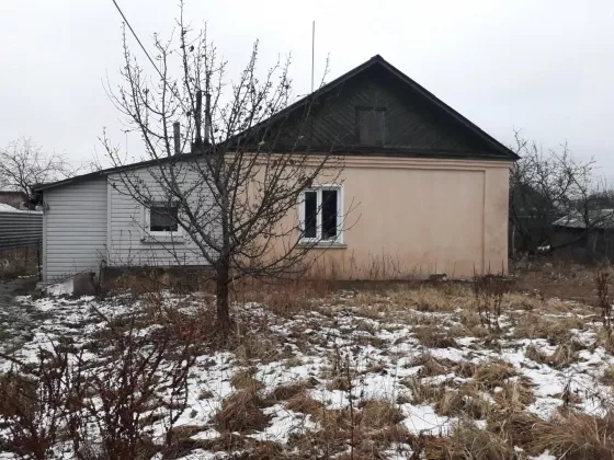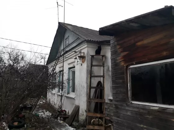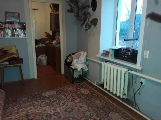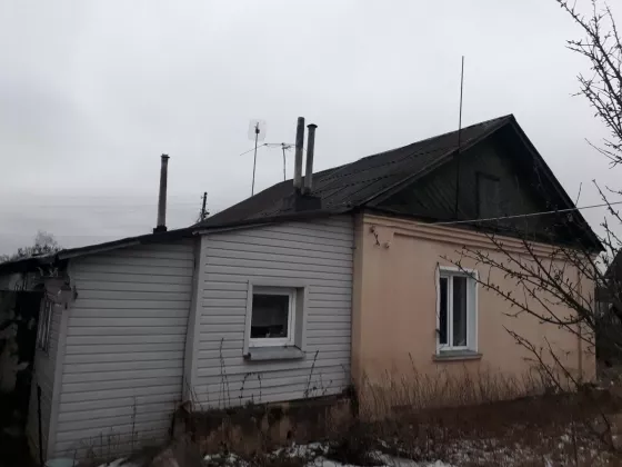 2/5 дома, земли около 4 сот, земля тоже в собственности. Индивидуальное отопление от газового котла, счетчик. 2 комнаты, кухня, прихожая. Вода-центральный водопровод. Кирпичный. Соседка-одна пенсионерка.
