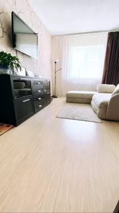 - окна пластиковые, на кухне и в комнате ламинат ( прихожая, ванная и туалет на полу плитка)